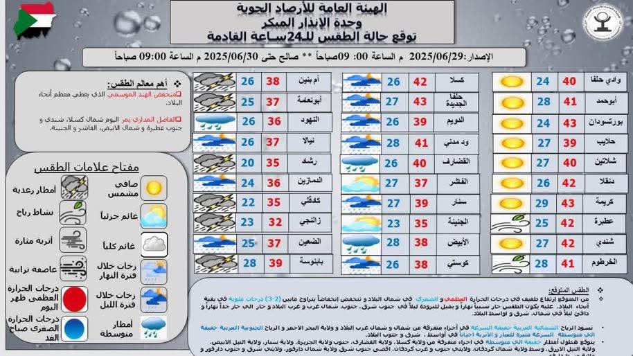 توقعات حالة الطقس في السودان خلال الـ”24″ ساعة القادمة