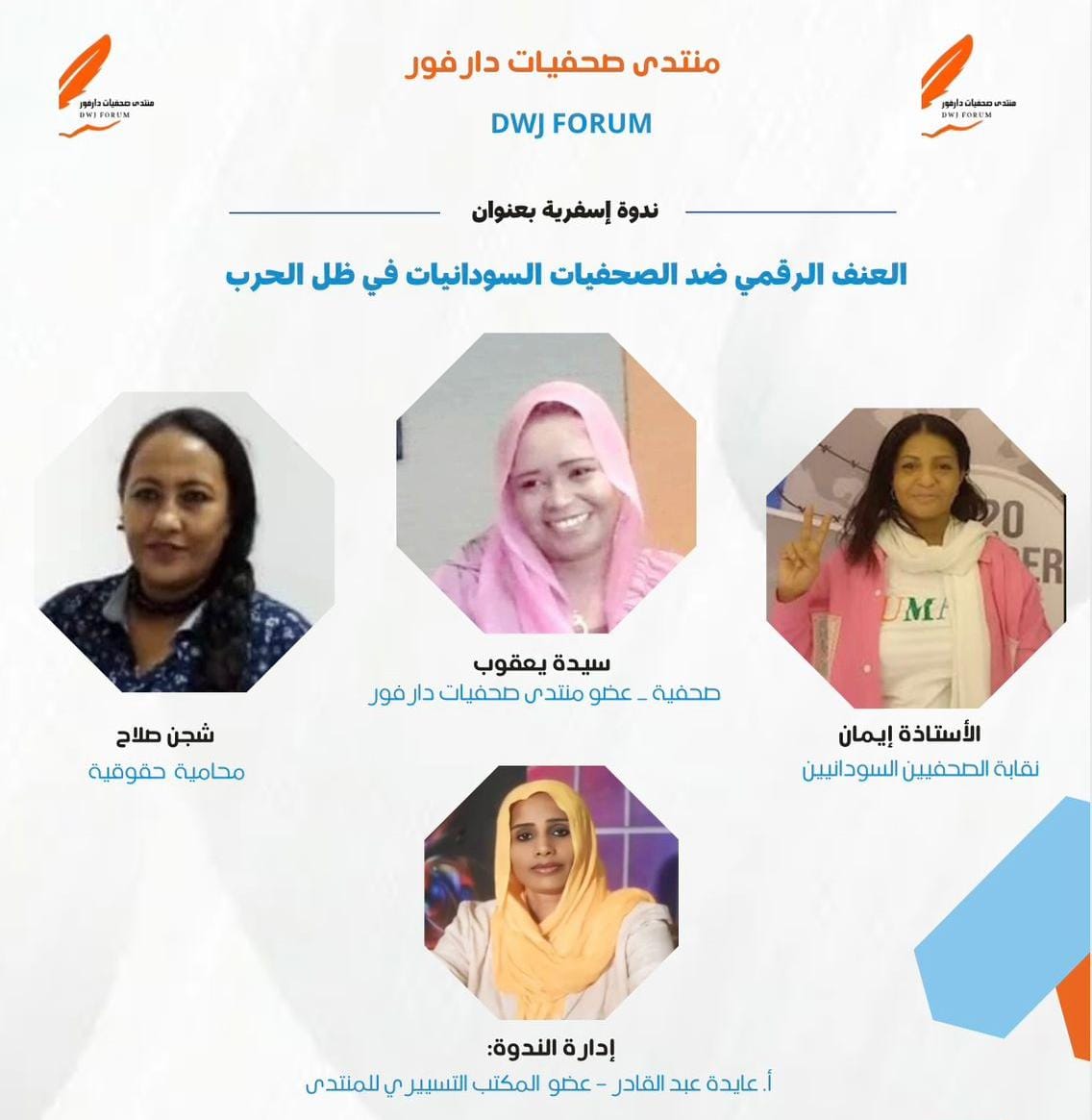 في إطار حملة الـ16 يوم لمناهضة العنف ضد المرأة، نظم المكتب التسييري لمنتدى صحفيات دارفور ندوة إسفيرية بعنوان «العنف الرقمي ضد الصحفيات السودانيات في ظل الحرب»، ركّزت على ثلاثة محاور رئيسية.
