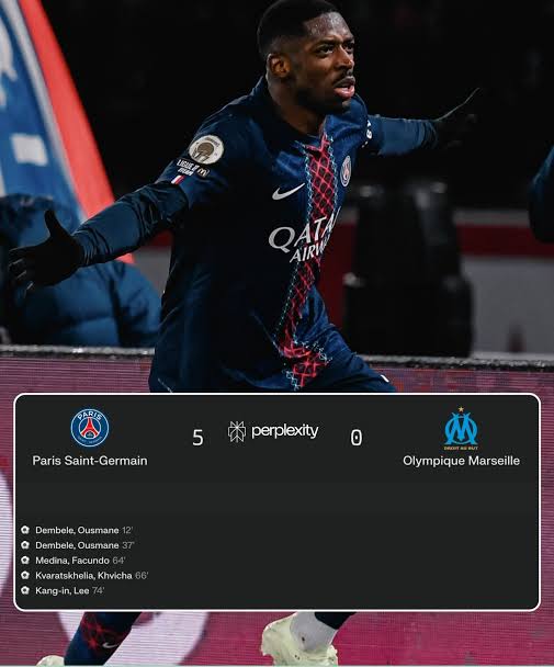 الخؤطوم، الغد السوداني – في ليلة كروية استثنائية خطفت أنظار المتابعين والباحثين عن نتائج مباريات اليوم، حسم باريس سان جيرمان مواجهة الكلاسيكو الفرنسي أمام غريمه التقليدي أولمبيك مارسيليا بخماسية نظيفة (5-0)، في قمة الجولة 21 من الدوري الفرنسي، مؤكداً هيمنته المطلقة على الكرة الفرنسية هذا الموسم.
