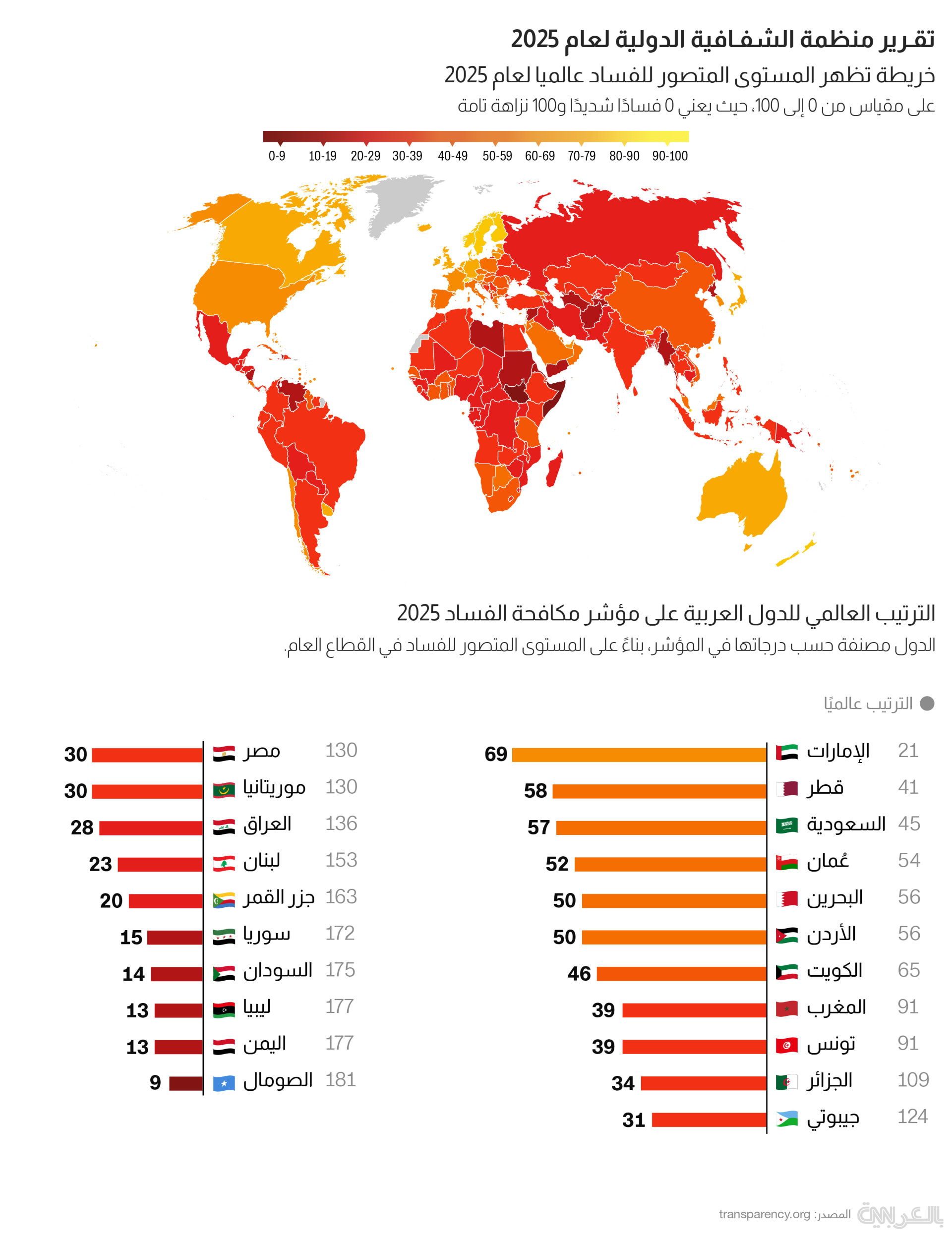 في المقابل، تصدرت قائمة الدول الأكثر نزاهة ومكافحة للفساد كل من الدنمارك، فنلندا، سنغافورة، نيوزيلندا، السويد، سويسرا، لوكسمبورغ، هولندا، ألمانيا، وآيسلندا، بعدما أظهرت هذه الدول مستويات متقدمة في الحوكمة الرشيدة وسيادة القانون ومكافحة الفساد.