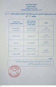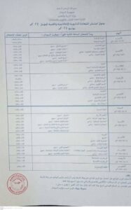 وقال د. معتصم علي الشيخ مدير الادارة العامة لامتحانات السودان ان الادارة اصدرت جداول الامتحانات للشهادات (الاكاديمية، الفنية، الاهلية وشهادة التعليم الحرفي)، مشيراً إلى أن الإمتحانات ستبدأ يوم الأحد الموافق 29/ 6 /2025م بمادتي التربية الاسلامية والتربية المسيحية ، وتنتهي في يوم الخميس 10/ 7/ 2025م بمادة اللغة الانجليزية. مبينا ان الامتحان يبدأ في تمام الساعة الثانية بعد الظهر بتوقيت السودان في جميع المراكز داخل السودان وخارجه.
