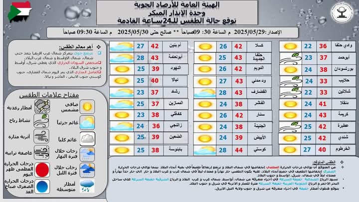 حالة الطقس في السودان خلال الـ”24″ ساعة القادمة